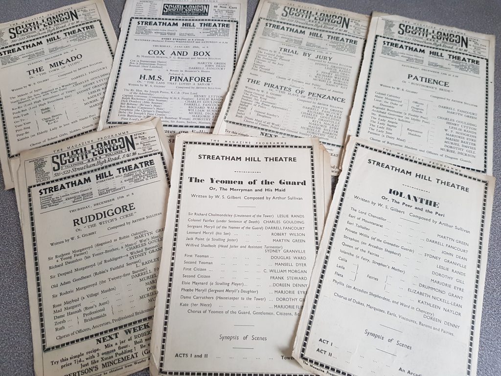 We’ve had a donation of programmes from Gilbert and Sullivan operas performed in the 1930s at Streatham Hill Theatre. Debbie Haughton found them in her late mother’s belongings, who left a note saying that the theatre did a season of these operas every year when was a child (she was born in 1929).